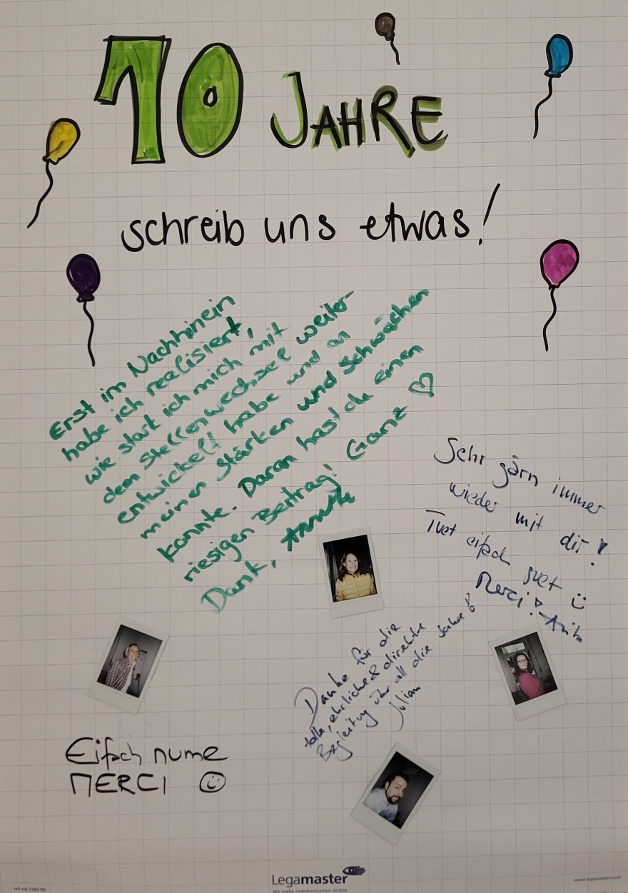 Ein grosses Merci an alle, die diesen Meilenstein mit mir gefeiert haben – sei es bei einem Cappuccino, einem Apéro oder in einem intensiven Gespräch. Ihr habt diese Momente besonders gemacht. Danke an meine wunderbare Weggefährtin Carmen, die organisiert, jongliert, den Überblick behält – und dabei nie den Humor und die Nerven verliert.